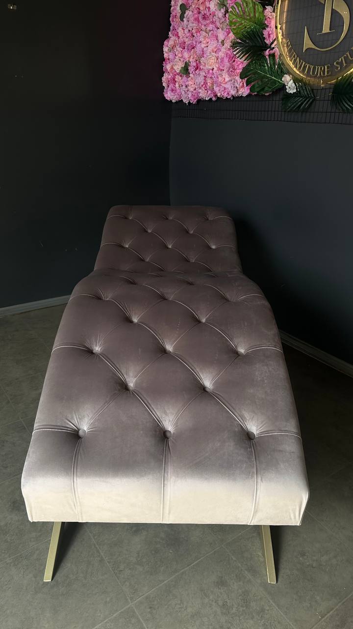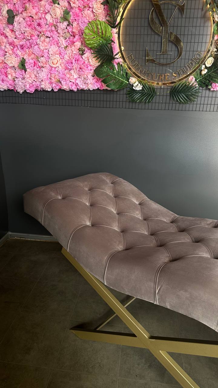 Анатомічна кушетка Loft каретна прошивка – косметологічна кушетка для нарощення вій, золота ніжка