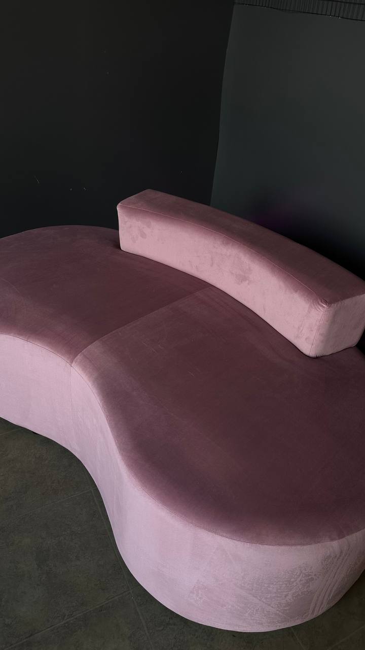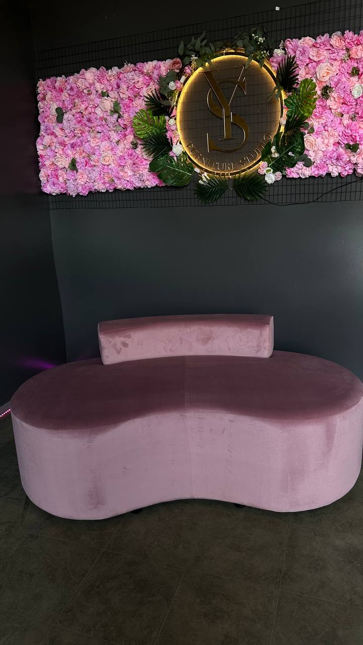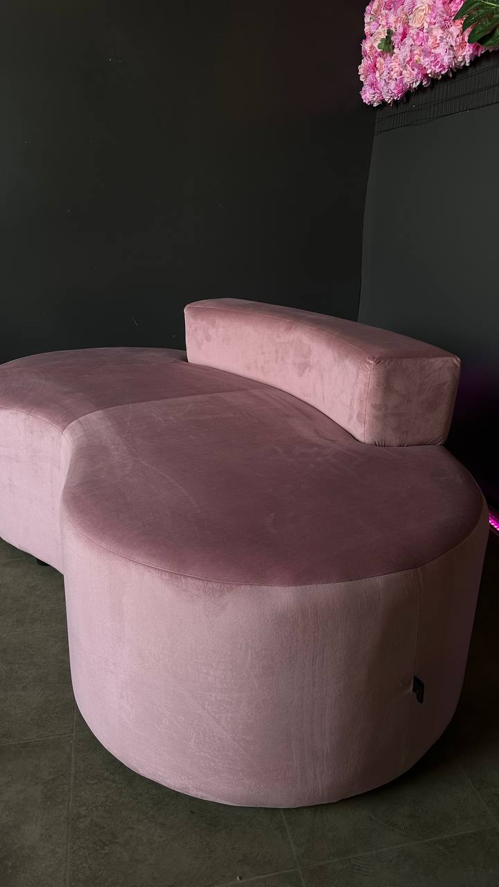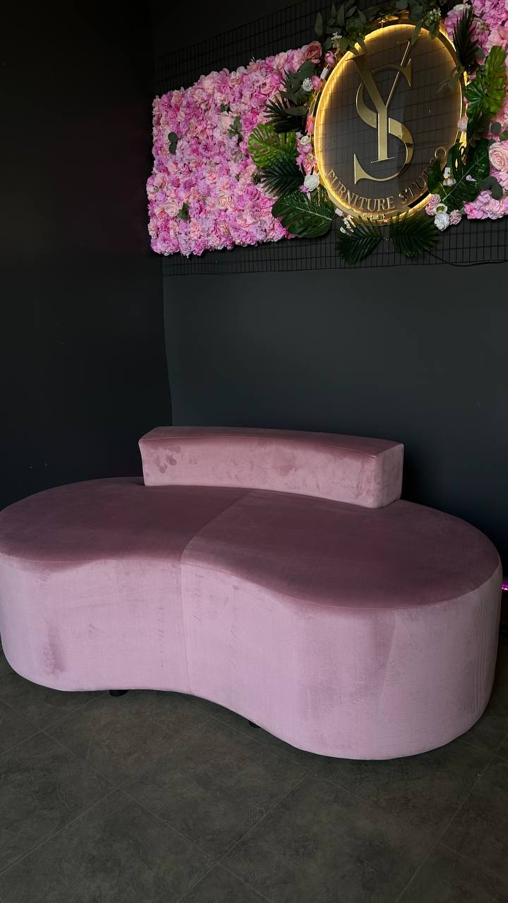 Стильний диван Luna у пудрово-рожевому велюрі — ідеальне рішення для зони очікування, салону краси або сучасного інтер’єру.