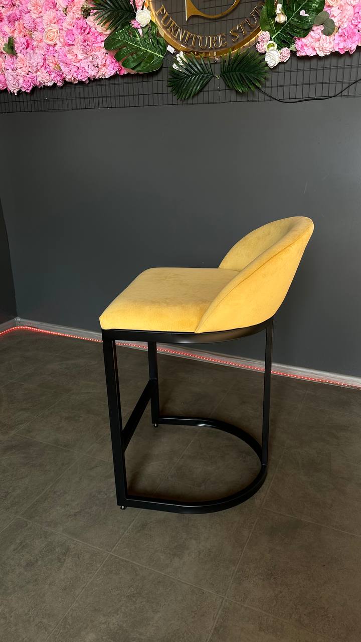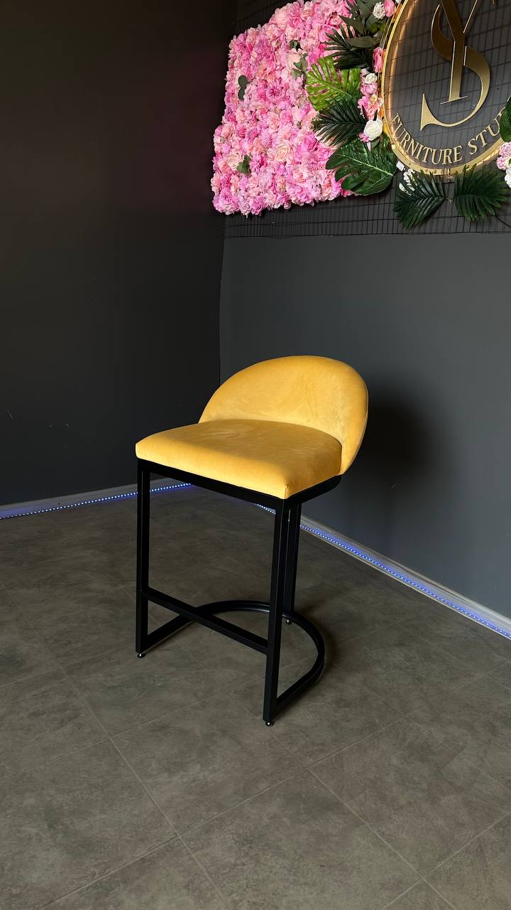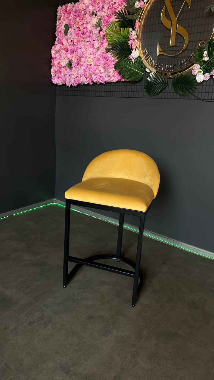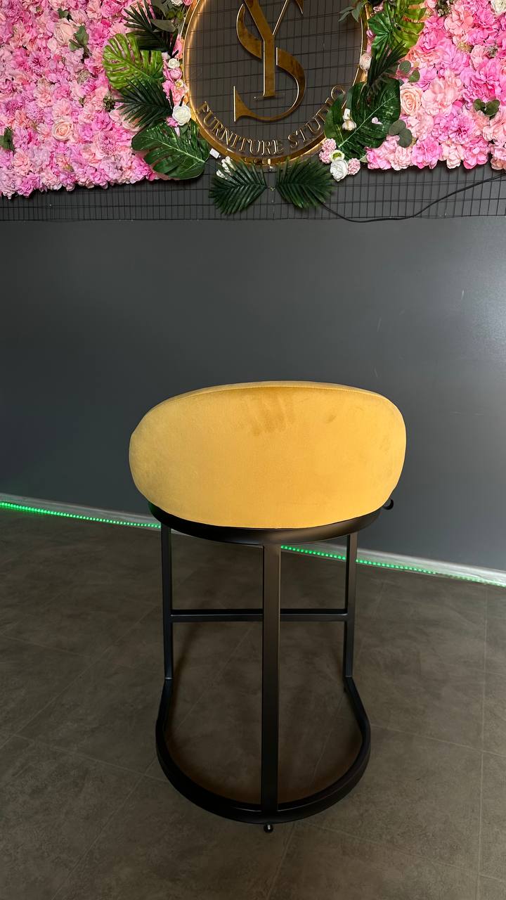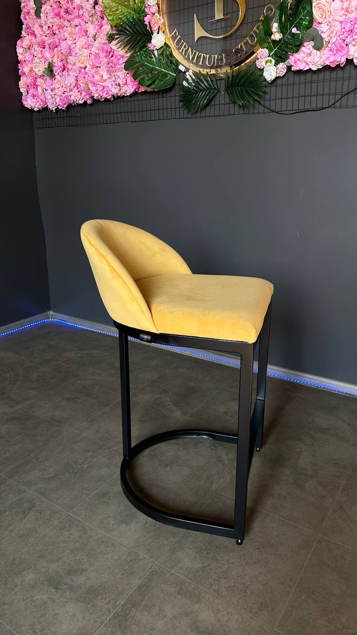 Купити барний стілець Bloom чорний каркас жовтий велюр | Барний стілець для кухні та салону