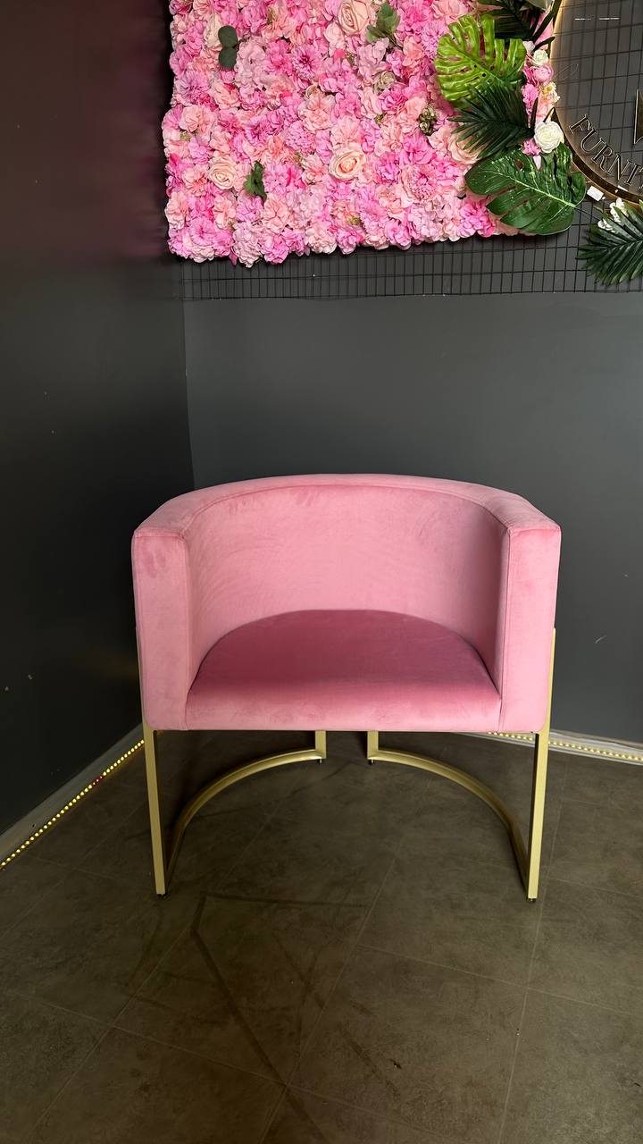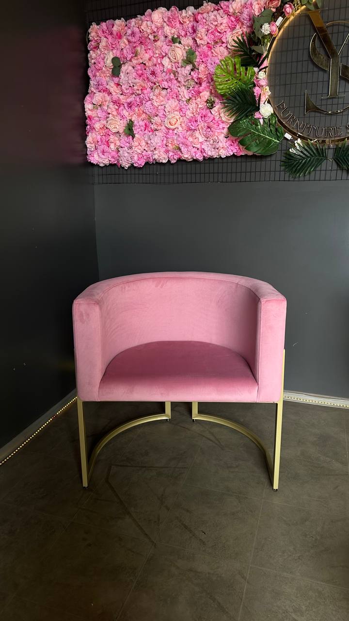 Стильне крісло Loft овальної форми з золотим каркасом та м’якою велюровою оббивкою. Ідеальне для салонів краси та сучасних інтер’єрів.