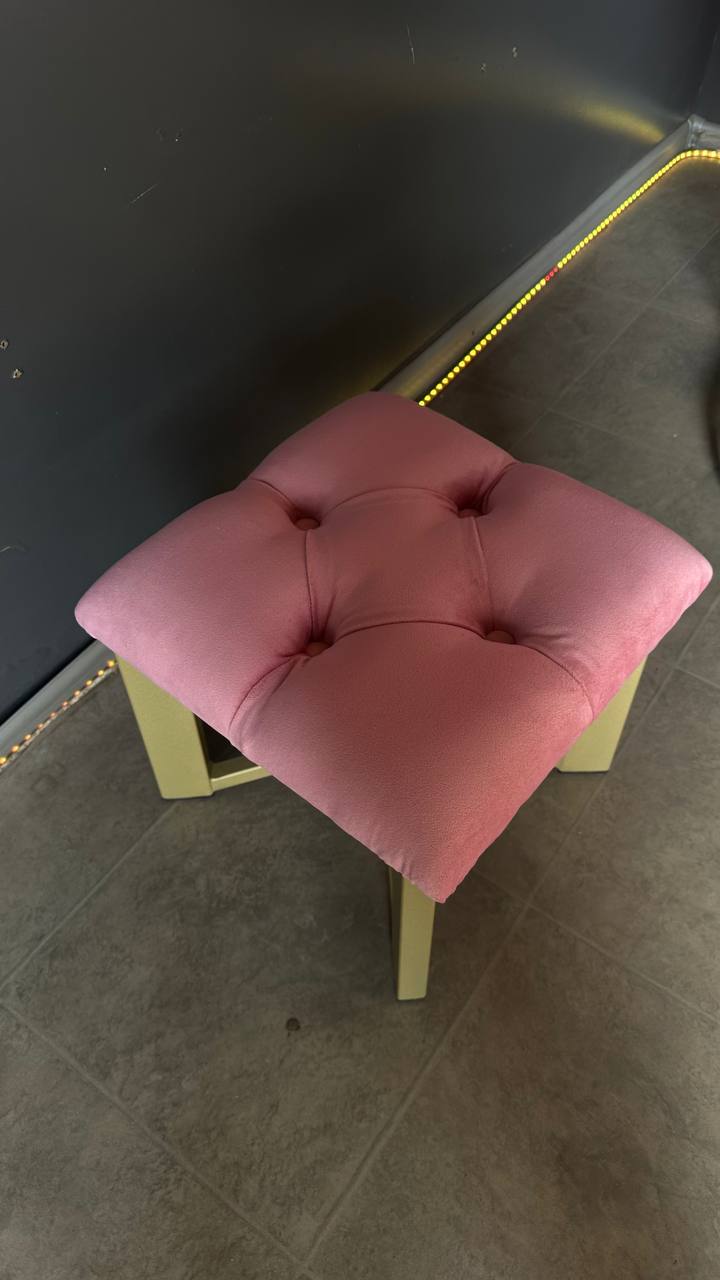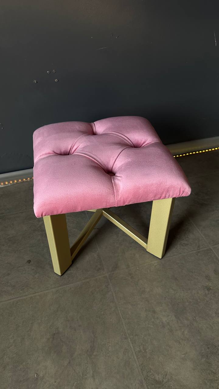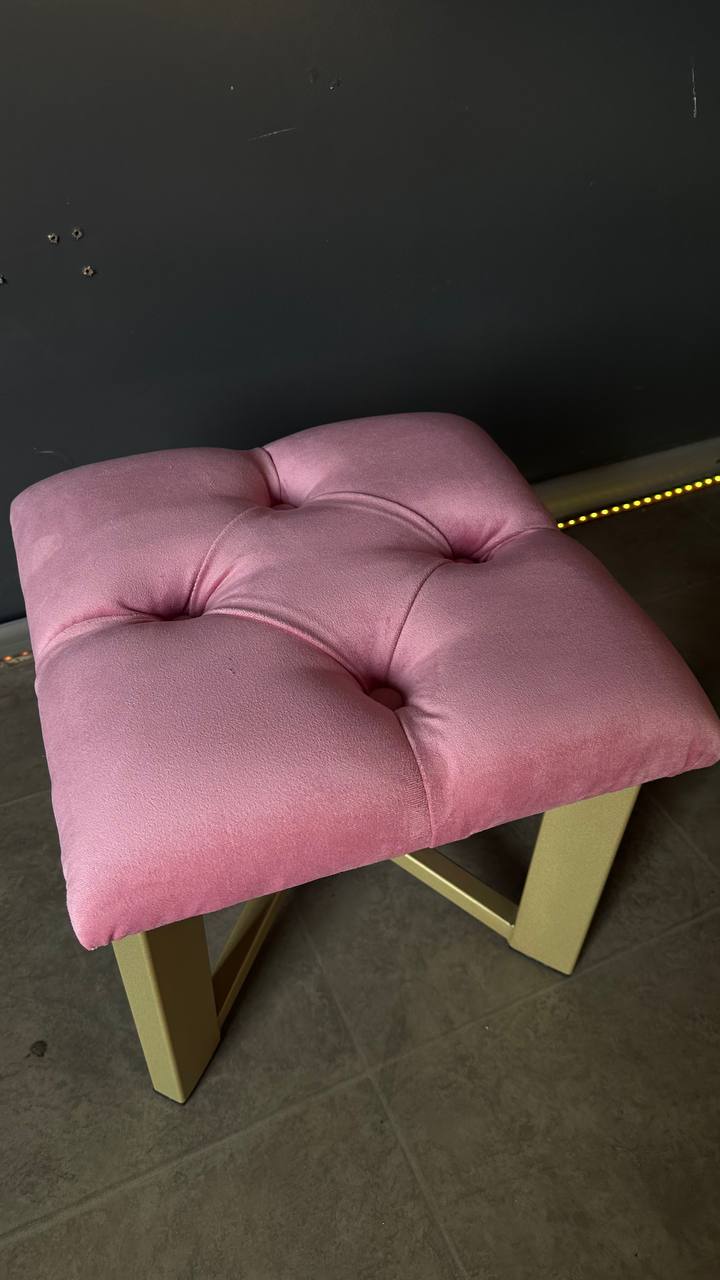 Елегантна підставка під сумку з каретною прошивкою, золотою основою та м’якою велюровою оббивкою.