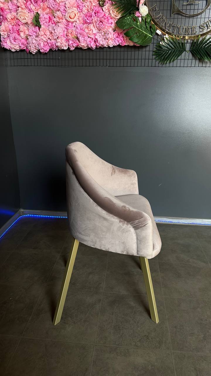 Золоті металеві ніжки додають преміального вигляду та роблять стілець акцентним елементом інтер’єру. Завдяки універсальному дизайну модель чудово підходить як для дому, так і для комерційних просторів.