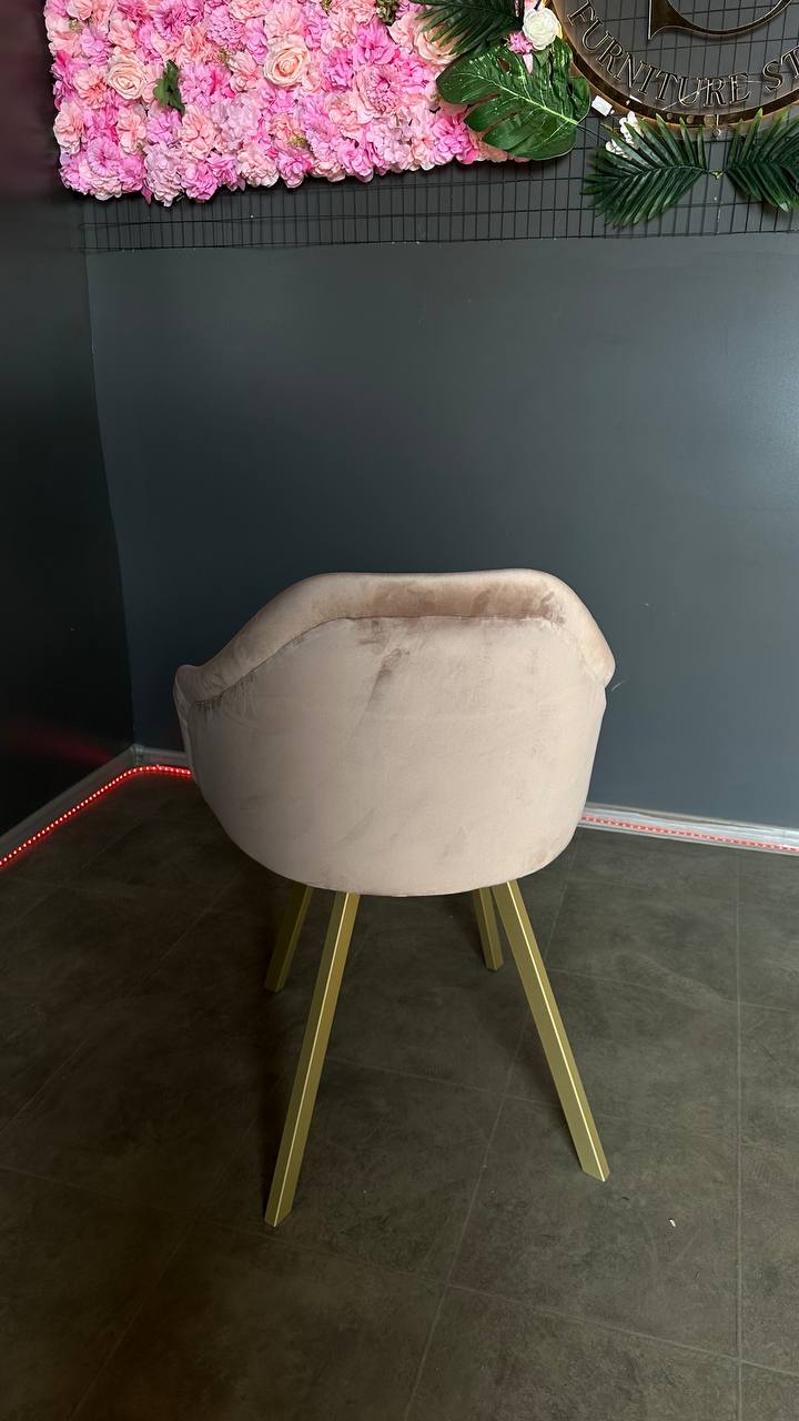Елегантний стілець Classic у бежевому велюрі з золотими ніжками. Комфортне рішення для кухні, салону краси або сучасного інтер’єру.
