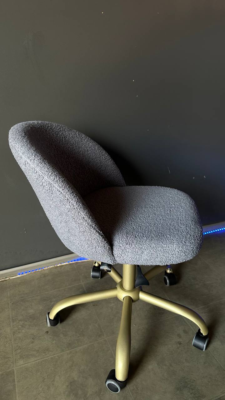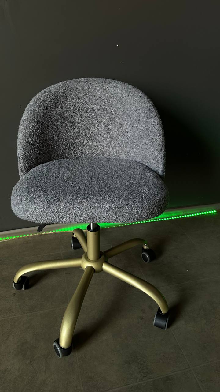 Купити стілець Soft на колесах золото букле сірий | Стілець для салону краси та майстрів