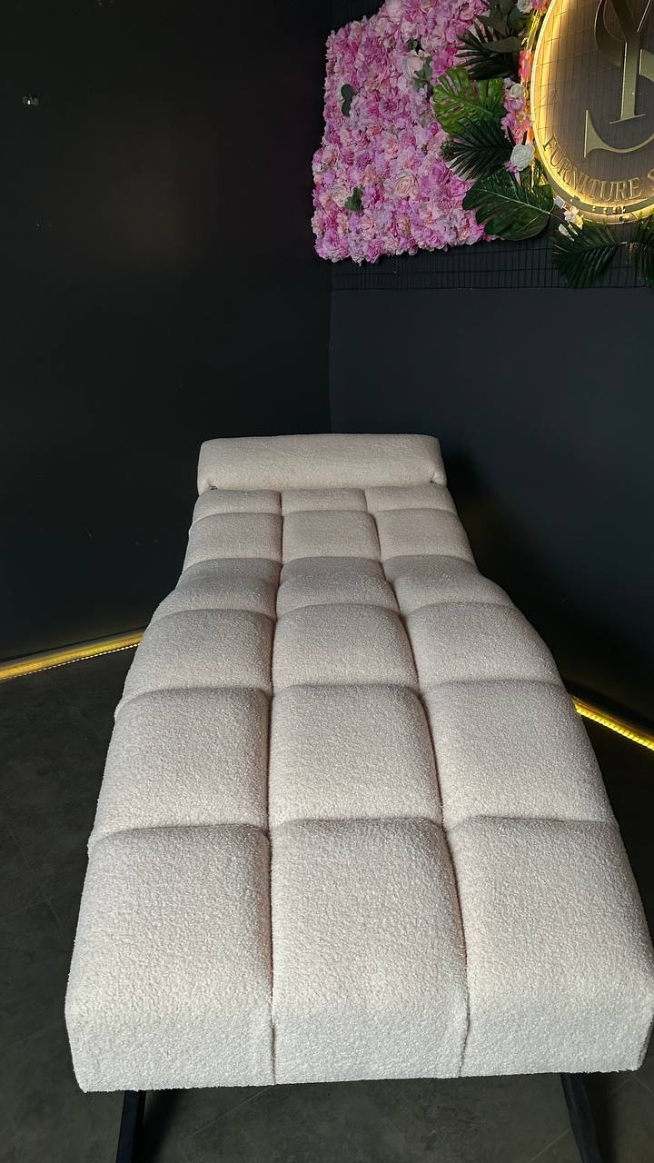Сучасна кушетка loft з квадратною прошивкою, м’якою тканиною букле та регулюванням узголів’я.