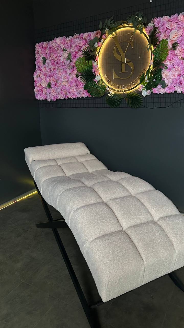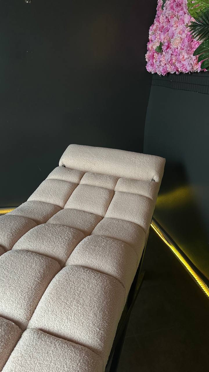 Кушетка у стилі loft з квадратною прошивкою та регулюванням узголів’я — це ідеальне рішення для салонів краси, де важливі комфорт і стиль.