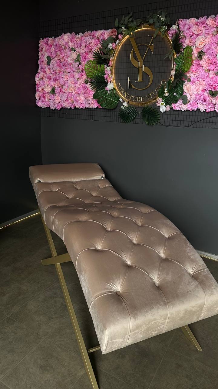 Кушетка лофт з регулюванням каретна прошивка велюр | Кушетка для салону краси