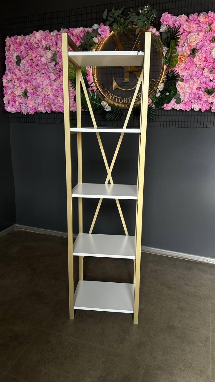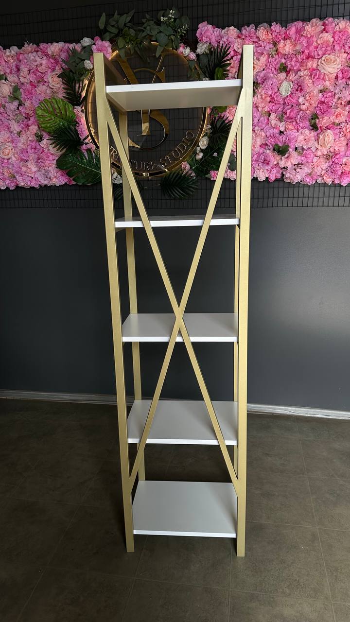 Пенал Loft Gold White — це функціональний стелаж у сучасному стилі loft, створений для зручного зберігання та ефектного оформлення простору. Модель ідеально підходить для салону краси, студії, офісу, магазину або домашнього інтер’єру.