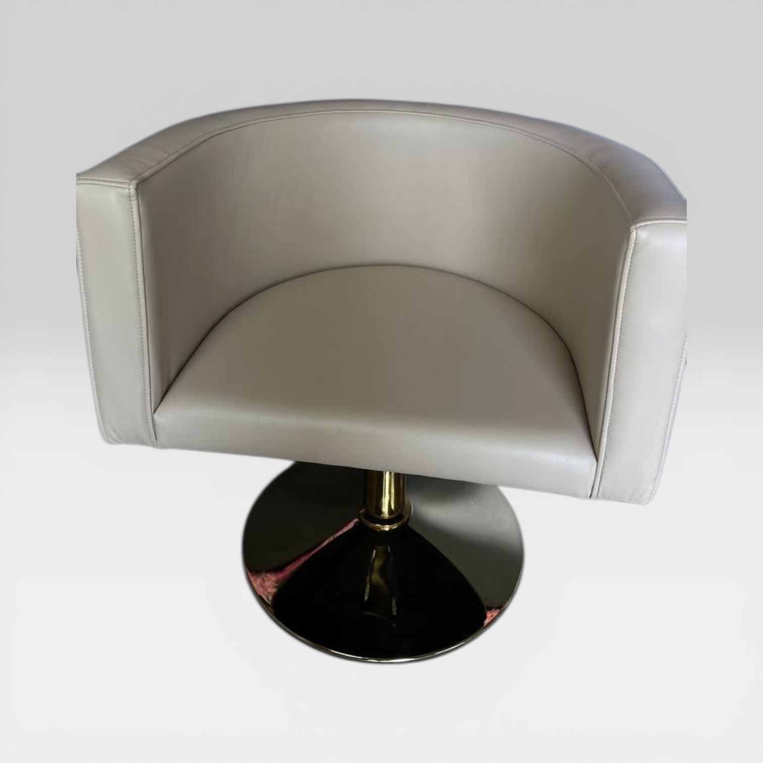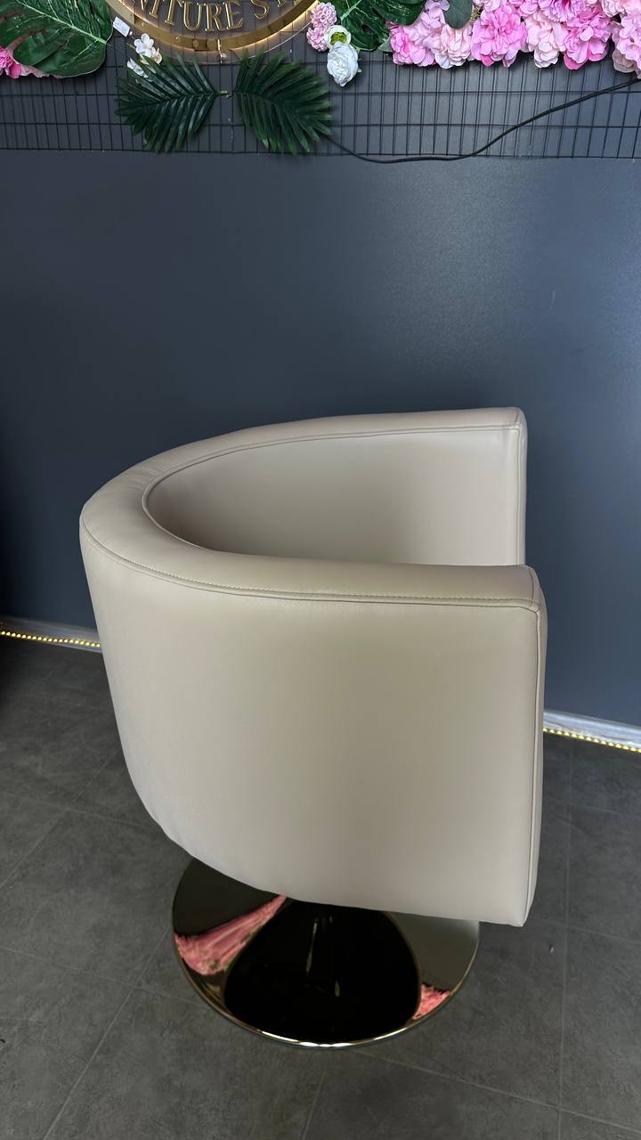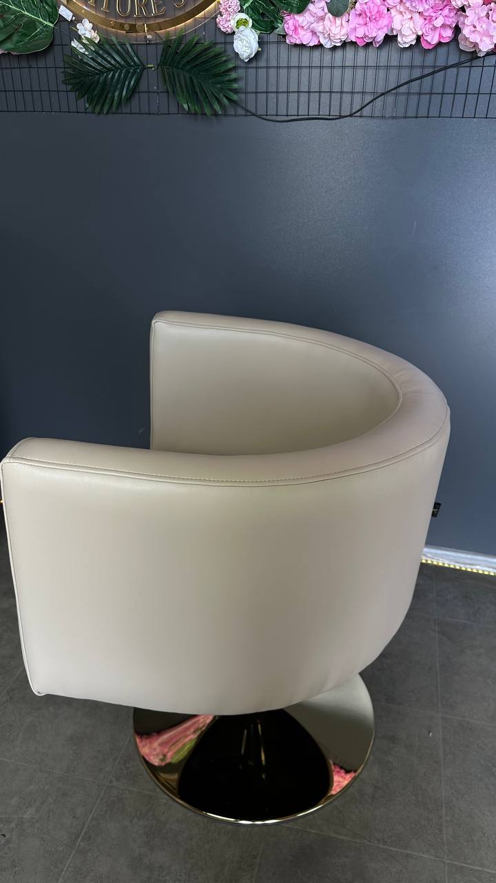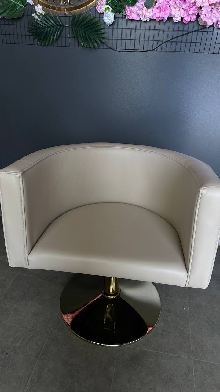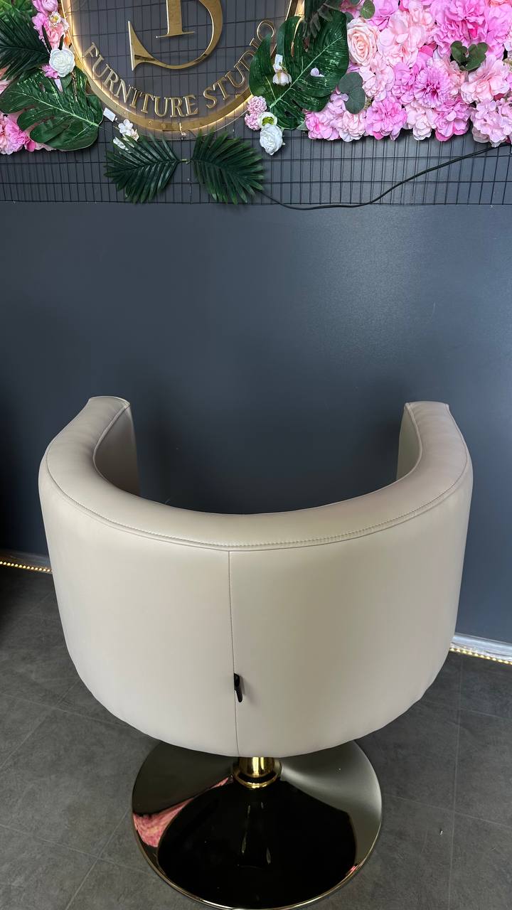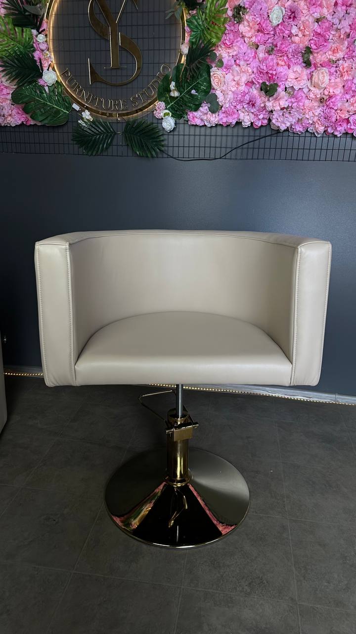 Перукарське крісло OVAL Gold на гідравліці – кругла золота база, бежевий екошкірозамінник