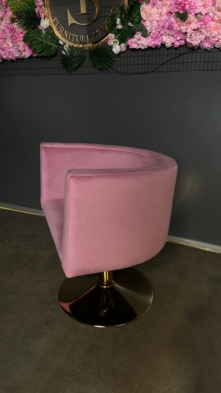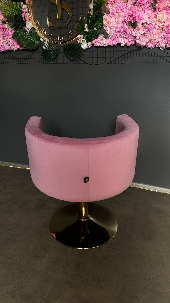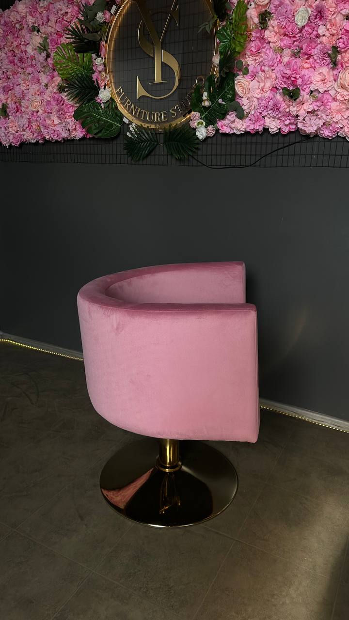 Перукарське крісло овал золото рожевий велюр | Крісло для салону краси