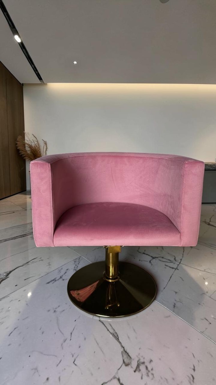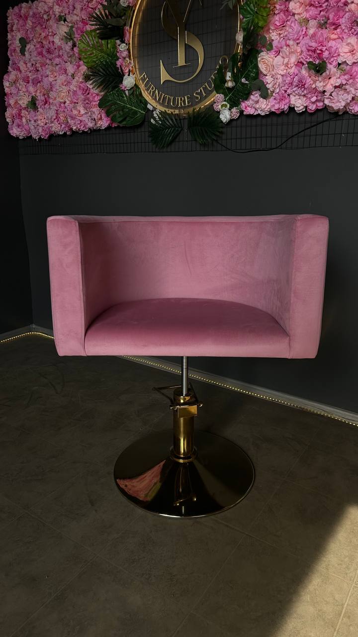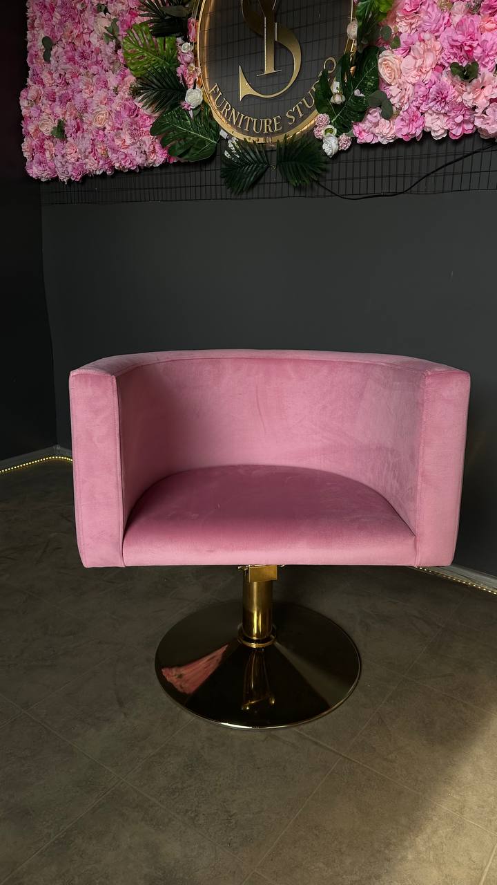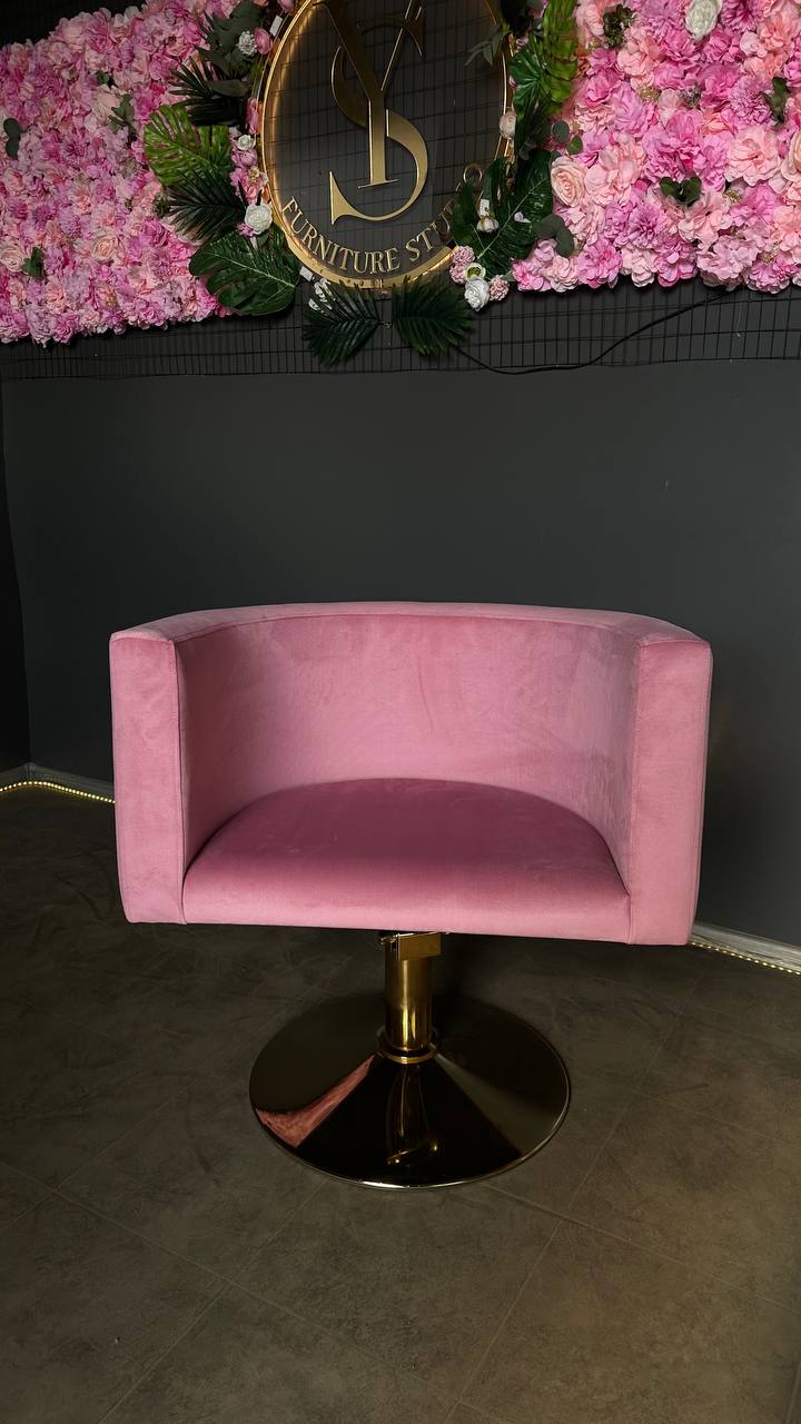 Перукарське крісло овал золото рожевий велюр | Крісло для салону краси