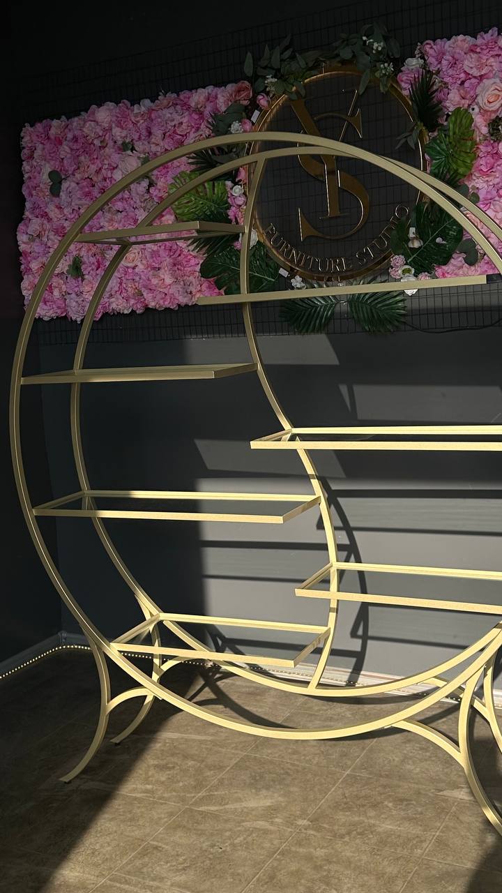 Круглий стелаж у стилі loft / glam — це ефектний елемент інтер’єру, який поєднує функціональність та сучасний дизайн.