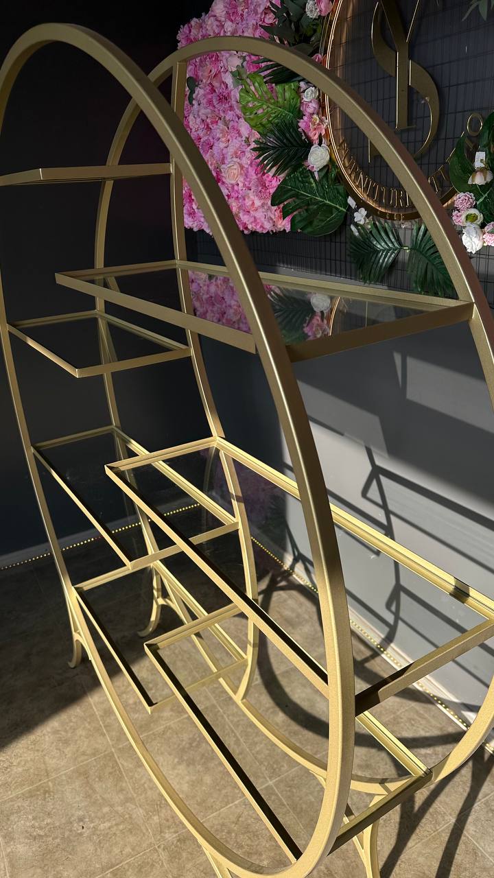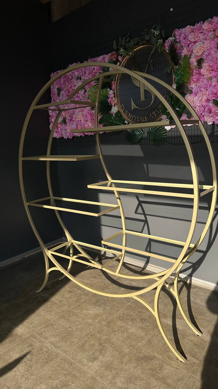 Стелаж круглий золото зі скляними полицями 150×172 | Декоративний стелаж loft