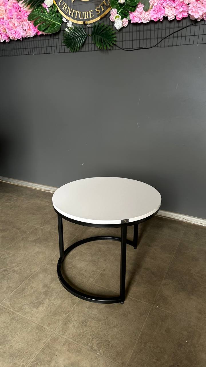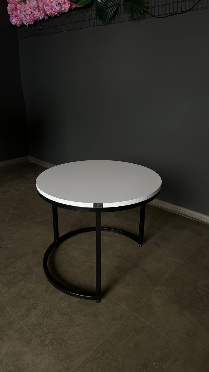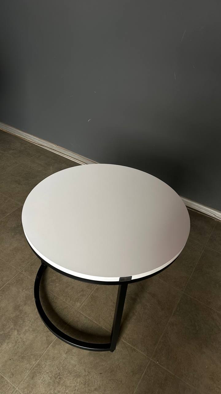 Стіл журнальний лофт круглий білий з чорними ніжками | Столик у вітальню