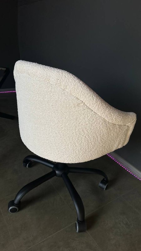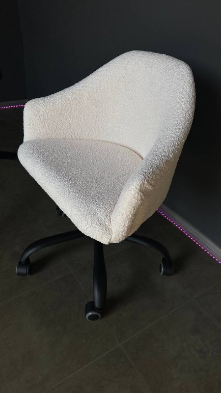 Стілець Classic на колесах, чорна основа, біла тканина букле