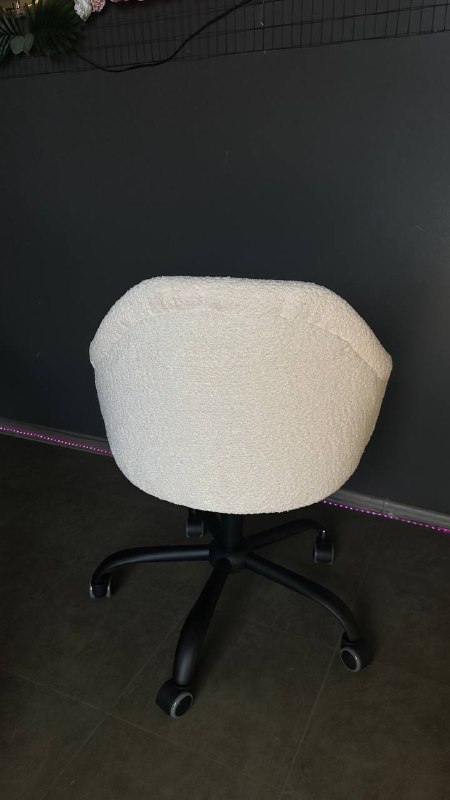 Стілець Classic на колесах у білій тканині букле з чорною основою — стильний та зручний варіант для салонів краси та дому.